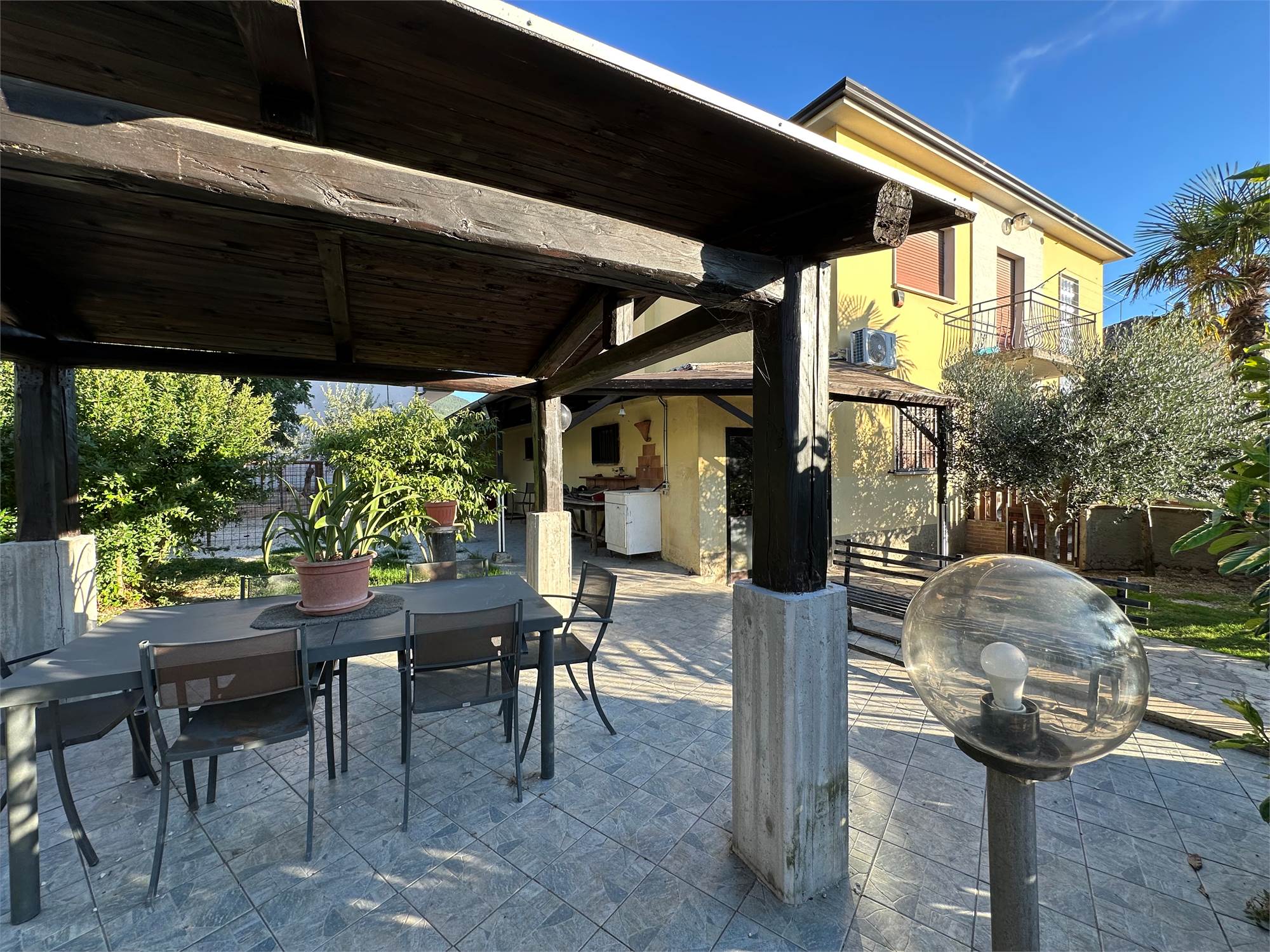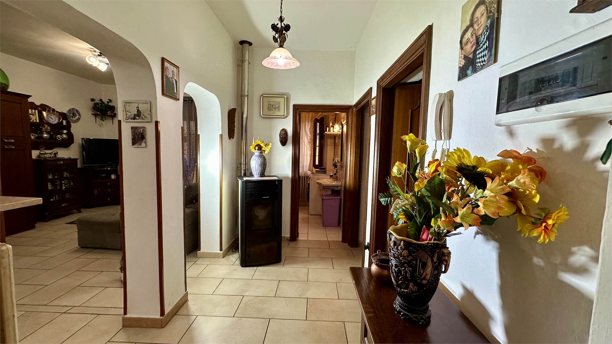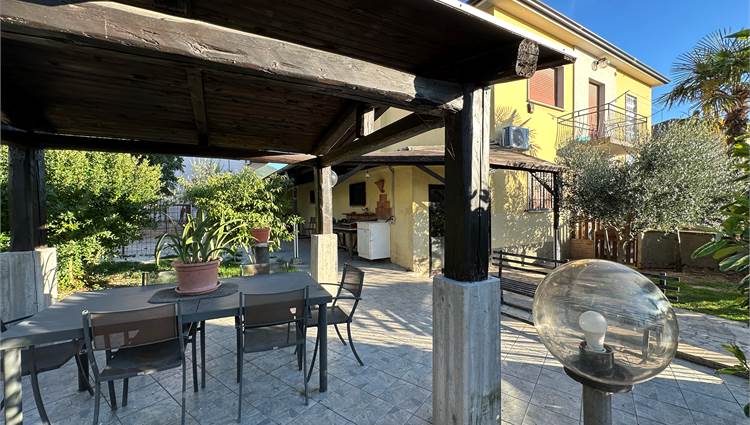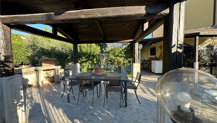 Questa proprietà è dotata di tutti i comfort moderni: riscaldamento con stufa a pellet, impianto di raffrescamento al piano terra e infissi nuovi con taglio termico. Inoltre, l'abitazione è completamente recintata con cancello elettrico, garantendo privacy e sicurezza. Il sottotetto accessibile tramite scala retrattile offre ulteriore spazio per riporre oggetti.