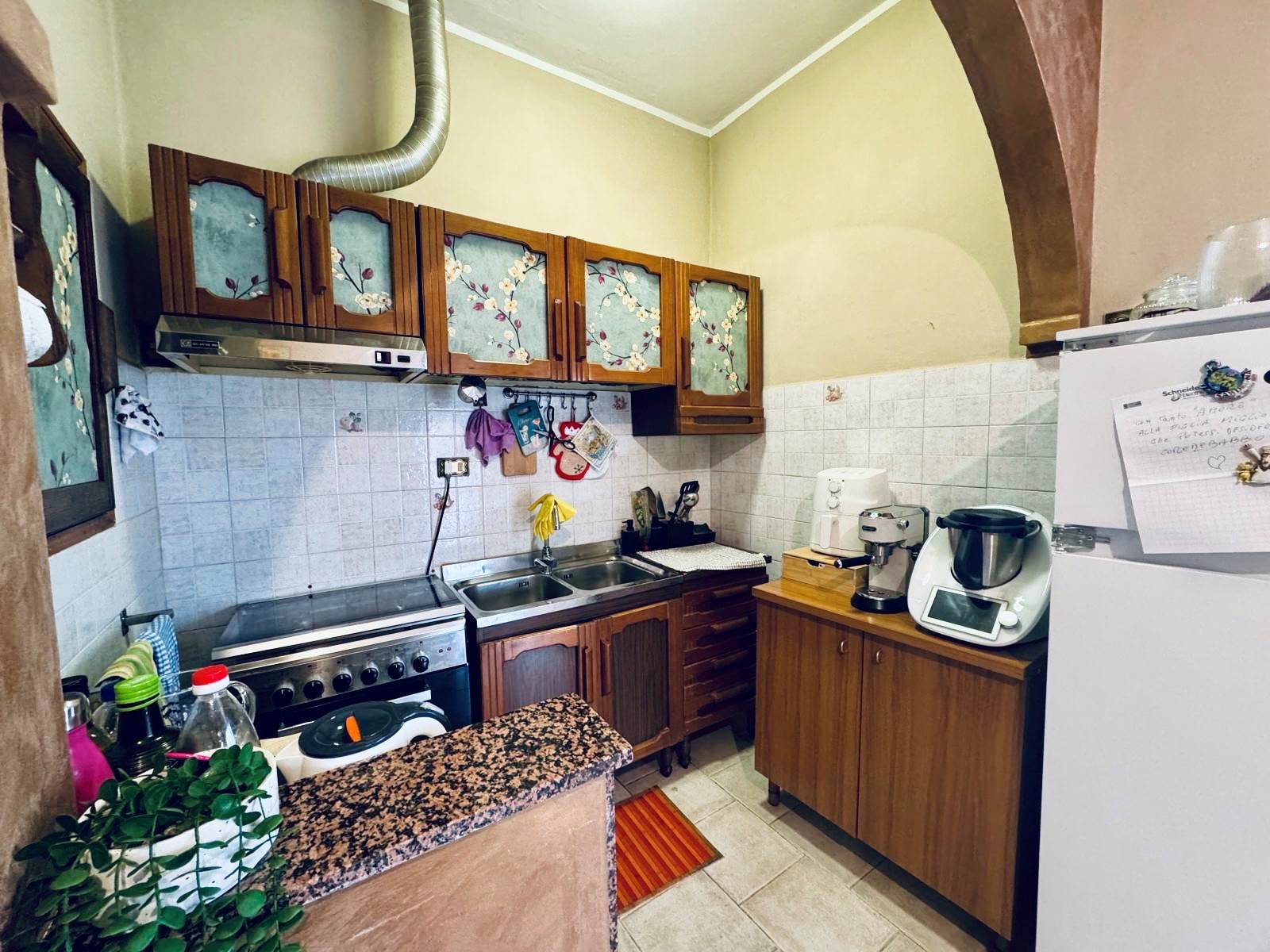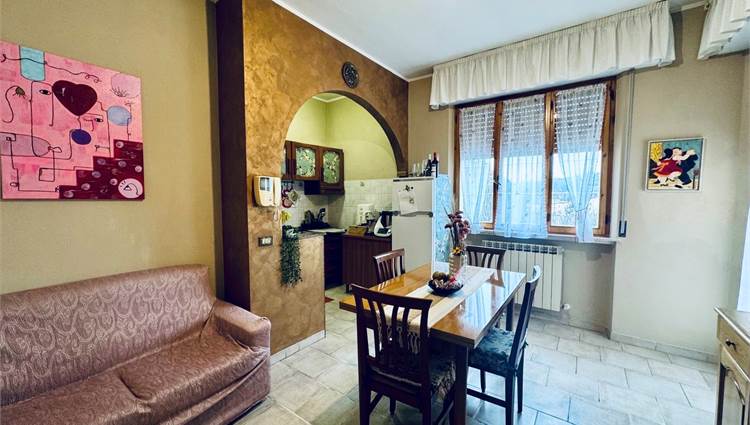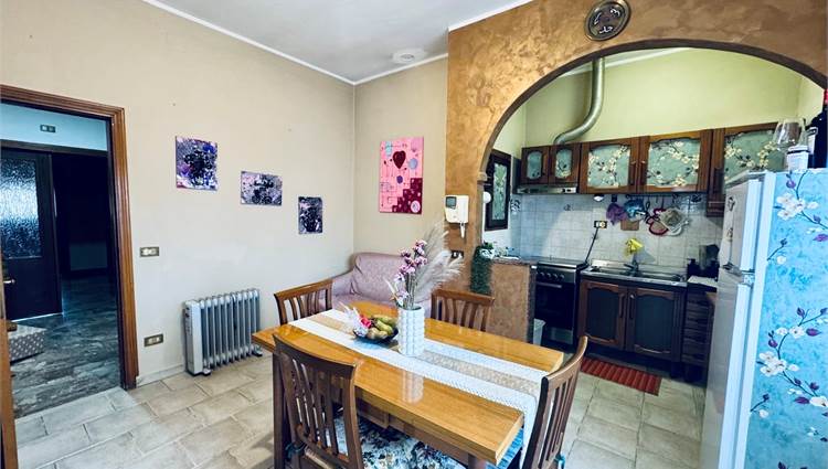 Internamente l'appartamento è composto da un ampio soggiorno con camino, una cucina abitabile, un disimpegno che conduce alla zona notte, tre camere matrimoniali e un bagno. Gli spazi sono ben distribuiti e adatti a soddisfare le esigenze di una famiglia che ricerca ambienti comodi e funzionali.